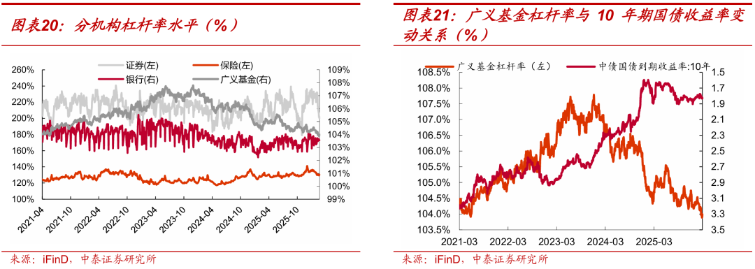 广义基金杠杆率基本持平。截至3月20日,银行杠杆率、证券杠杆率、保险杠杆率和广义基金杠杆率分别为103.6%、200.1%、130.4%、104%,环比3月13日分别变动-0.05BP、-10.64BP、-0.15BP、0.01BP,截至3月20日分别位于30%、12%、77%、1%历史分位数水平。
